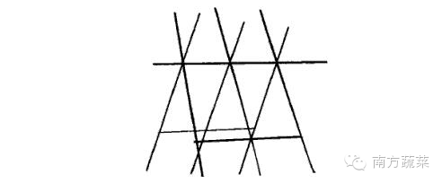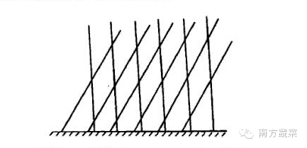 由单行插直排竹架演变而来,畦宽包沟100cm,于畦中央单行定植,株距5O~55cm,每667m 种植1200~ 1300株。植株抽蔓后在定植行用200~300cm长、基部直径大拇指粗的竹竿斜插入土2O~25 cm,呈“井”字形篱笆架。当主蔓长至100 cm左右时,除主蔓外另选基部生长健壮的两条侧蔓,分别向篱笆架上不同方向生长,以后只是根据植株生长状况绑蔓上架,不再整蔓。单行篱笆架与单行插直排架比较更加牢固,更便于茎蔓顺架生长。不足之处是枝蔓密布容易形成郁蔽,通风不良,不利于结瓜。