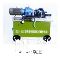 HGS-40C型钢筋直螺纹(剥肋)滚丝机,由机架夹紧机构、进给滑板、减速机及滚丝头,冷却系统和电器系统组成,主要用于建筑工程带肋钢筋的直螺纹丝头加工。 特点:1、第三代剥肋滚轧直螺纹机床,采用螺旋升角机头,滚制丝头更省力,精度更高,可以滚轧60度角的螺纹丝口,也可以剥肋滚轧75度角的螺丝口,只需更换滚丝轮即可。2、用一个滚盘就可以完成16至40的钢筋剥肋滚轧。3、滚丝车床滚丝后自动回车。4、设计合理,使用维护方便,更换刀具仅需2分钟。5、刀具采用自动开合结构,钢筋一次装夹,30秒完成丝头加工,效率高。6、采用滚丝轮冷轧工艺,钢筋丝头加工“模具化”,精度高,合格率100%。7、操作方便快捷,用一个滚丝盘即可一次性完成对φ16-φ40mm的HRB335级和HRB400级带肋钢筋的剥肋和滚轧。