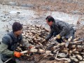 山西平陆农民冬日破冰挖莲藕