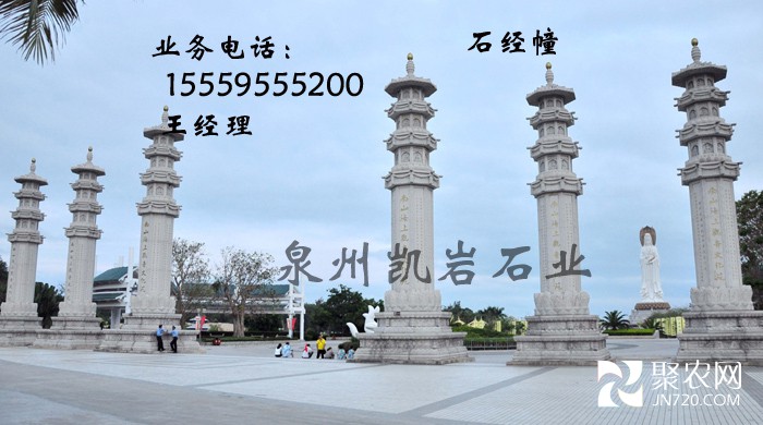 泉州凯岩石业有限公司接受定制的石雕经幢采用福建优质花岗岩芝麻白为原材料,均由惠安石雕之乡惠安雕刻工艺师纯手工打造。可提供设计图纸。
